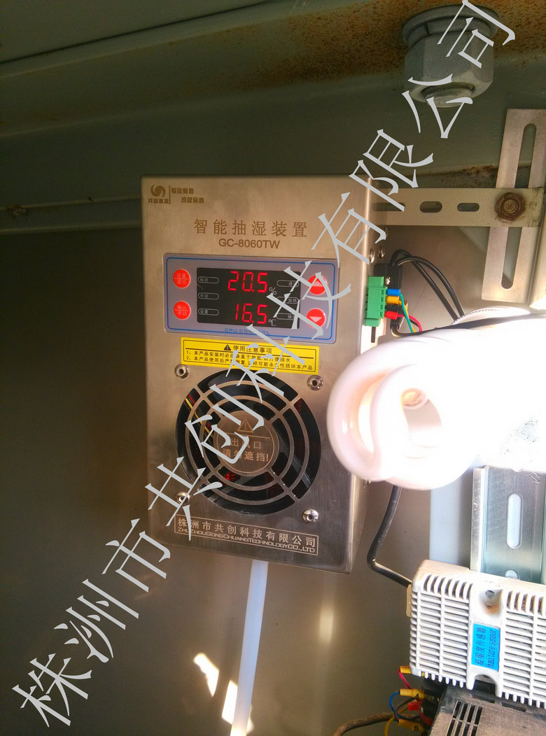 現(xiàn)場環(huán)境描述:變電站位于郊區(qū),梅雨季節(jié)長期濕度達(dá)80%RH。變電站戶外GIS斷路器空間1.5立方。安裝抽濕器4小時后完quan解除至今。現(xiàn)場濕度目前控制在70%RH。